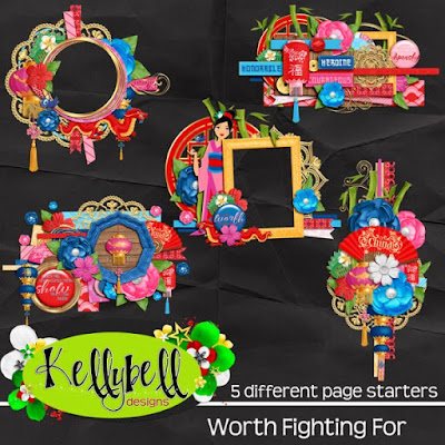 This week, Kelly continues her fantastic princess collection with a girl Worth Fighting For - Mulan! This breathtakingly beautiful collection will showcase your photos of meet and greets with Mulan and her friends and visits to the China pavilion in Epcot. Be sure to grab the Worth Fighting For Page Starters, Journal Cards, Word Art, Word Flair, and Quick Pages so you can get down to business right away!
